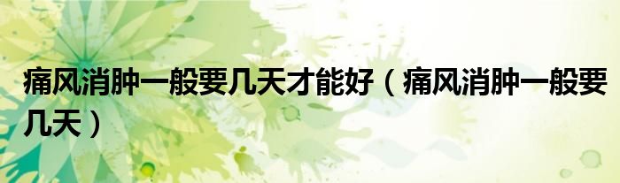 大家好,乐天来为大家解答以下的问题,痛风消肿一般要几天才能好,痛风消肿一般要几天很多人还不知道,现在让我们一起来看看吧!