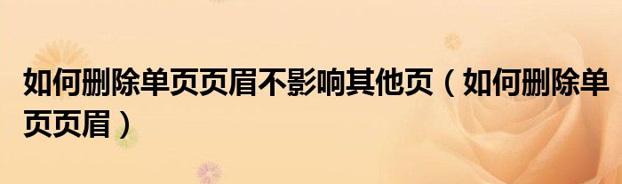 大家好,小晋来为大家解答以下问题,关于如何删除单页页眉不影响其他页,如何删除单页页眉很多人还不知道,今天让我们一起来看看吧!