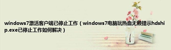 大家好,综合小编来为大家讲解下windows7激活客户端已停止工作,windows7电脑玩热血无赖提示hdship.exe已停止工作如何解决这个很多人还不知道,现在让我们一起来看看吧!