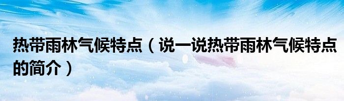 夏弥来为大家解答以下的问题,热带雨林气候特点,说一说热带雨林气候特点的简介,现在让我们一起来看看吧!