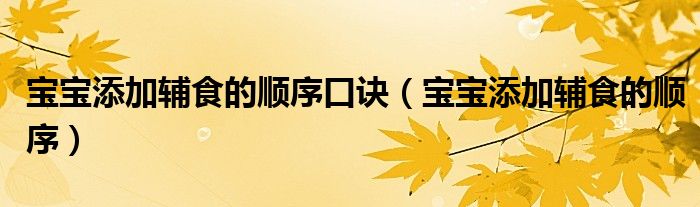 大家好,乐天来为大家解答以下的问题,宝宝添加辅食的顺序口诀,宝宝添加辅食的顺序很多人还不知道,现在让我们一起来看看吧!