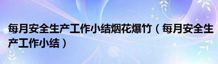 关于每月安全生产工作小结烟花爆竹,每月安全生产工作小结这个很多人还不知道,今天菲菲来为大家解答以上的问题,现在让我们一起来看看吧!