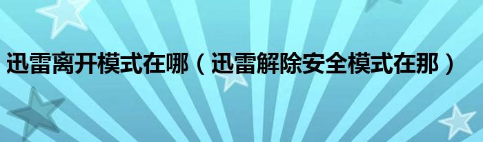 大家好,小晋来为大家解答以下问题,关于迅雷离开模式在哪,迅雷解除安全模式在那很多人还不知道,今天让我们一起来看看吧!