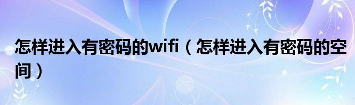 怎样进入有密码的wifi(怎样进入有密码的空间)