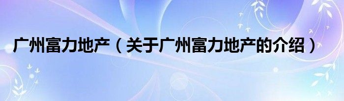 大家好,小夏来为大家解答以上的问题。广州富力地产,关于广州富力地产的介绍很多人还不知道,现在让我们一起来看看吧!