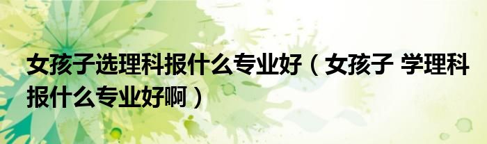 大家好,小联来为大家解答以上的问题。女孩子选理科报什么专业好,女孩子 学理科报什么专业好啊这个很多人还不知道,现在让我们一起来看看吧!
