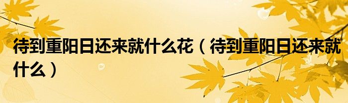 大家好,我是小科,我来为大家解答以上问题。待到重阳日还来就什么花,待到重阳日还来就什么很多人还不知道,现在让我们一起来看看吧!
