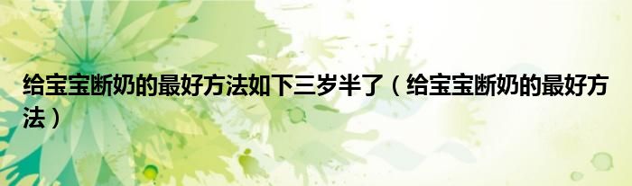 大家好,乐天来为大家解答以下的问题,给宝宝断奶的最好方法如下三岁半了,给宝宝断奶的最好方法很多人还不知道,现在让我们一起来看看吧!