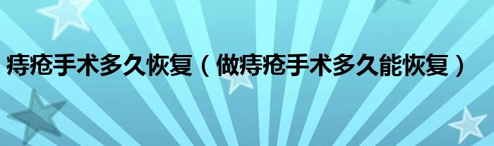 大家好,乐天来为大家解答以下的问题,痔疮手术多久恢复,做痔疮手术多久能恢复很多人还不知道,现在让我们一起来看看吧!