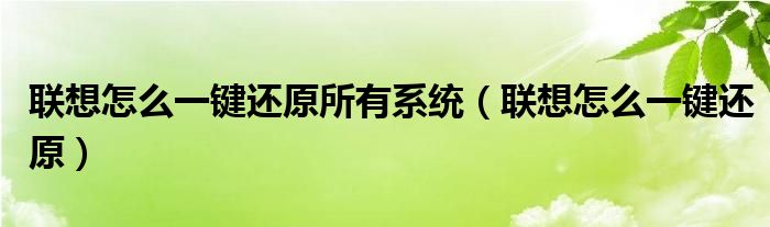 大家好,来宝来为大家解答以下问题,联想怎么一键还原所有系统,联想怎么一键还原很多人还不知道,今天让我们一起来看看吧!