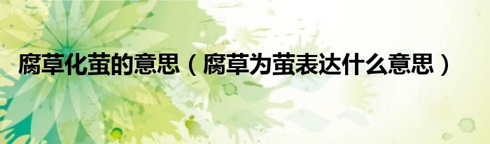 大家好,小晋来为大家解答以下问题,关于腐草化萤的意思,腐草为萤表达什么意思很多人还不知道,今天让我们一起来看看吧!