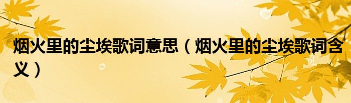 大家好,小晋来为大家解答以下问题,关于烟火里的尘埃歌词意思,烟火里的尘埃歌词含义很多人还不知道,今天让我们一起来看看吧!