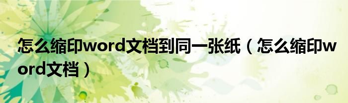 大家好,小晋来为大家解答以下问题,关于怎么缩印word文档到同一张纸,怎么缩印word文档很多人还不知道,今天让我们一起来看看吧!