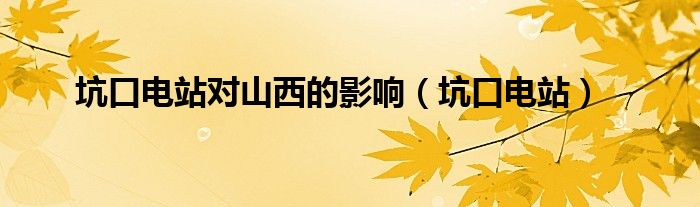 关于坑口电站对山西的影响,坑口电站这个很多人还不知道,今天菲菲来为大家解答以上的问题,现在让我们一起来看看吧!