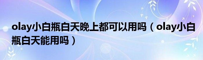 大家好,小晋来为大家解答以下问题,关于olay小白瓶白天晚上都可以用吗,olay小白瓶白天能用吗很多人还不知道,今天让我们一起来看看吧!