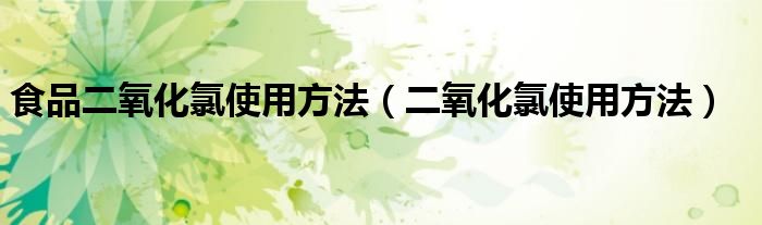 关于食品二氧化氯使用方法,二氧化氯使用方法这个很多人还不知道,今天菲菲来为大家解答以上的问题,现在让我们一起来看看吧!