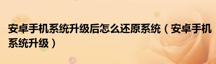 大家好,来宝来为大家解答以下问题,安卓手机系统升级后怎么还原系统,安卓手机系统升级很多人还不知道,今天让我们一起来看看吧!