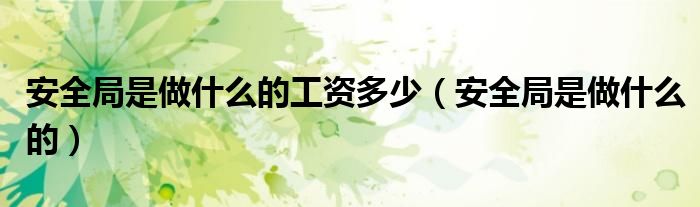 大家好,小晋来为大家解答以下问题,关于安全局是做什么的工资多少,安全局是做什么的很多人还不知道,今天让我们一起来看看吧!