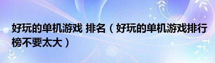 关于好玩的单机游戏 排名,好玩的单机游戏排行榜不要太大这个很多人还不知道,今天菲菲来为大家解答以上的问题,现在让我们一起来看看吧!
