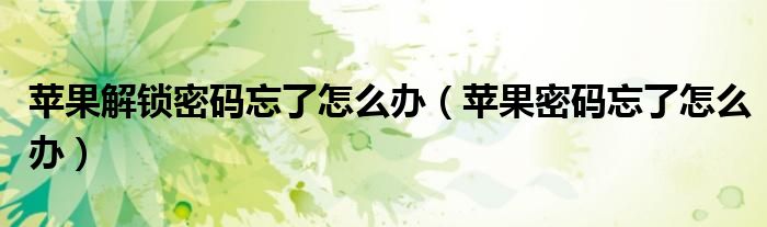 大家好,来宝来为大家解答以下问题,苹果解锁密码忘了怎么办,苹果密码忘了怎么办很多人还不知道,今天让我们一起来看看吧!