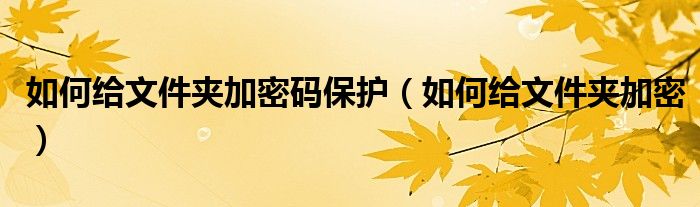 大家好,来宝来为大家解答以下问题,如何给文件夹加密码保护,如何给文件夹加密很多人还不知道,今天让我们一起来看看吧!