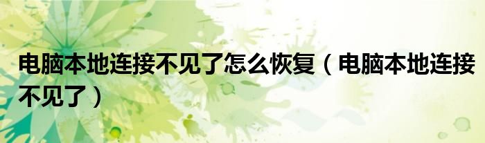大家好,小飞来为大家解答以上问题,电脑本地连接不见了怎么恢复,电脑本地连接不见了很多人还不知道,现在让我们一起来看看吧!