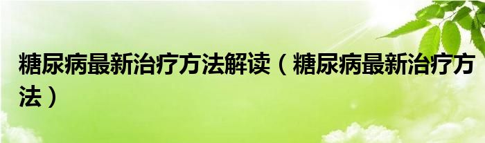 关于糖尿病最新治疗方法解读,糖尿病最新治疗方法这个很多人还不知道,今天菲菲来为大家解答以上的问题,现在让我们一起来看看吧!