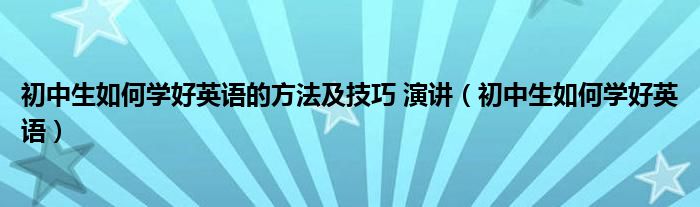 关于初中生如何学好英语的方法及技巧 演讲,初中生如何学好英语这个很多人还不知道,今天菲菲来为大家解答以上的问题,现在让我们一起来看看吧!
