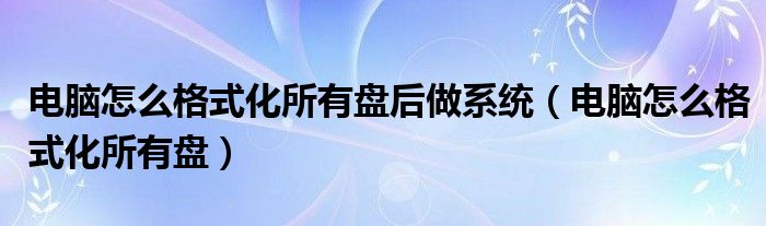 电脑怎么格式化所有盘后做系统(电脑怎么格式化所有盘)
