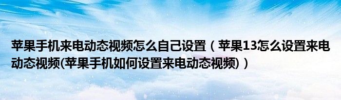 大家好,小常来为大家解答以上问题。苹果手机来电动态视频怎么自己设置,苹果13怎么设置来电动态视频(苹果手机如何设置来电动态视频)很多人还不知道,现在让我们一起来看看吧!