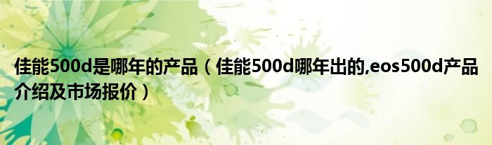 大家好,小常来为大家解答以上问题。佳能500d是哪年的产品,佳能500d哪年出的,eos500d产品介绍及市场报价很多人还不知道,现在让我们一起来看看吧!