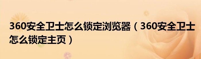 大家好,今天小悦来为大家解答以上问题。360安全卫士怎么锁定浏览器,360安全卫士怎么锁定主页很多人还不知道,现在让我们一起来看看吧!