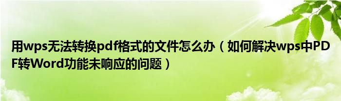 大家好,今天小悦来为大家解答以上问题。用wps无法转换pdf格式的文件怎么办,如何解决wps中PDF转Word功能未响应的问题很多人还不知道,现在让我们一起来看看吧!