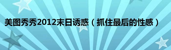 大家好,今天小悦来为大家解答以上问题。美图秀秀2012末日诱惑,抓住最后的性感很多人还不知道,现在让我们一起来看看吧!