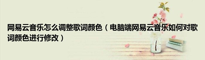 大家好,今天小悦来为大家解答以上问题。网易云音乐怎么调整歌词颜色,电脑端网易云音乐如何对歌词颜色进行修改很多人还不知道,现在让我们一起来看看吧!
