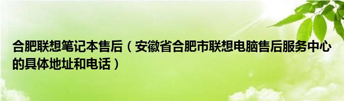 1,安徽省合肥市联想电脑售后服务中心的具体地址和电话?: