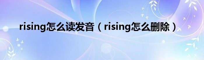 大家好,慧慧来为大家解答以上问题,rising怎么读发音,rising怎么删除很多人还不知道,现在让我们一起来看看吧!