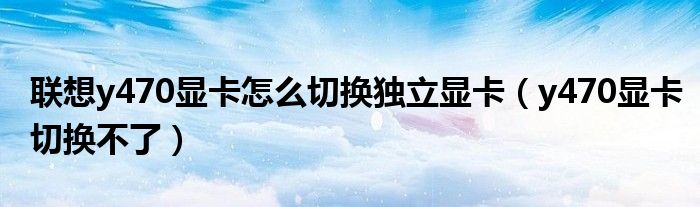 对于y470,显卡不能切换。联想y470不需要使用硬切换在set display和sole display之间切换。现在Y470增加了一个自动切换技术Optimus(即自动判断显卡需要自动切换的程序)。提示:XP下不支持,需要Win7系统。