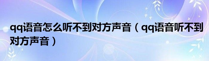 关于qq语音怎么听不到对方声音,qq语音听不到对方声音这个很多人还不知道,今天菲菲来为大家解答以上的问题,现在让我们一起来看看吧!