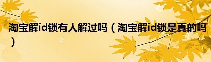 大家好,小晋来为大家解答以下问题,关于淘宝解id锁有人解过吗,淘宝解id锁是真的吗很多人还不知道,今天让我们一起来看看吧!