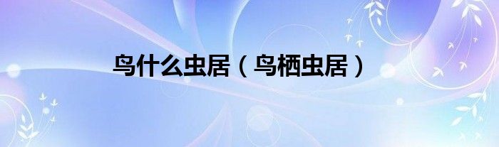 大家好,小晋来为大家解答以下问题,关于鸟什么虫居,鸟栖虫居很多人还不知道,今天让我们一起来看看吧!