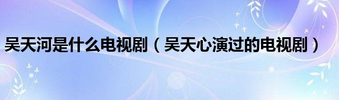关于吴天河是什么电视剧,吴天心演过的电视剧这个很多人还不知道,今天菲菲来为大家解答以上的问题,现在让我们一起来看看吧!
