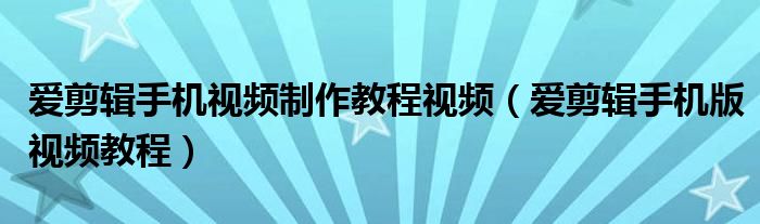 大家好,小晋来为大家解答以下问题,关于爱剪辑手机视频制作教程视频,爱剪辑手机版视频教程很多人还不知道,今天让我们一起来看看吧!