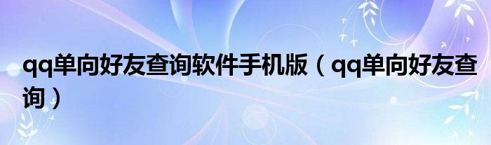 大家好,小晋来为大家解答以下问题,关于qq单向好友查询软件手机版,qq单向好友查询很多人还不知道,今天让我们一起来看看吧!