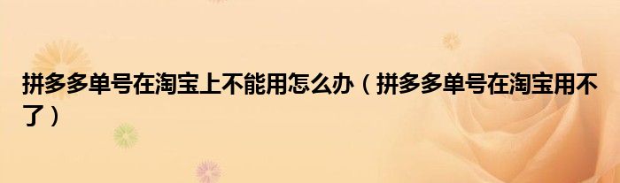大家好,跳跳为你解答以上问题。拼多多单号在淘宝上不能用怎么办,拼多多单号在淘宝用不了这个问题很多人还不知道,现在让我们一起来看看吧!