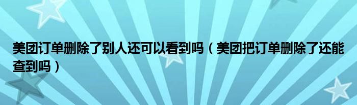 大家好,跳跳为你解答以上问题。美团订单删除了别人还可以看到吗,美团把订单删除了还能查到吗这个问题很多人还不知道,现在让我们一起来看看吧!