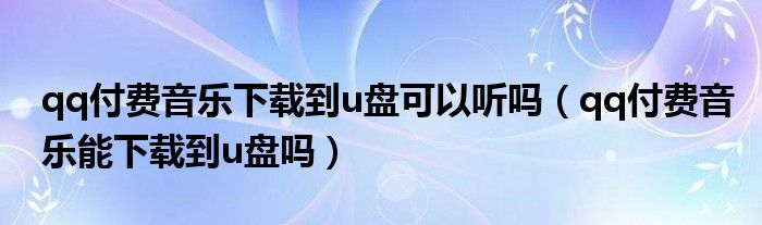 大家好,跳跳为你解答以上问题。qq付费音乐下载到u盘可以听吗,qq付费音乐能下载到u盘吗这个问题很多人还不知道,现在让我们一起来看看吧!