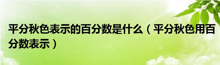 大家好,小晋来为大家解答以下问题,关于平分秋色表示的百分数是什么,平分秋色用百分数表示很多人还不知道,今天让我们一起来看看吧!