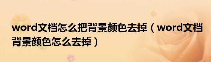 word文档怎么把背景颜色去掉(word文档背景颜色怎么去掉)