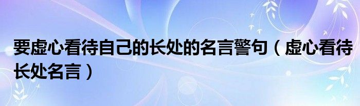 大家好,小晋来为大家解答以下问题,关于要虚心看待自己的长处的名言警句,虚心看待长处名言很多人还不知道,今天让我们一起来看看吧!